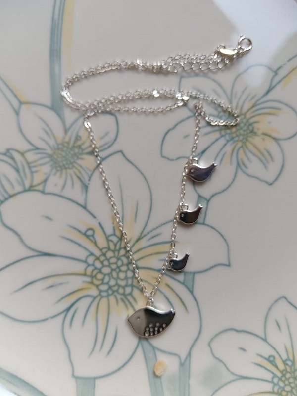 Collar de 45cm, plata 925, es un collar con su mamá pollito y sus 3 hijos, hermoso regalo.